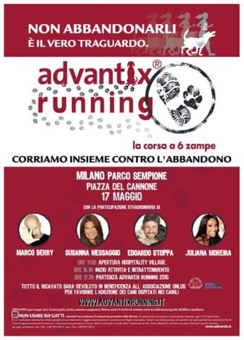 C’è grande attesa anche quest’anno per Advantix Running, la corsa di solidarietà per sensibilizzare l’opinione pubblica contro l’abbandono e il maltrattamento degli amici a 4 zampe, che si terrà in domenica 17 maggio in Piazza del Cannone all’interno di Parco Sempione a Milano.