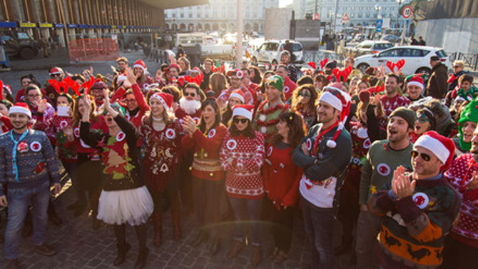 'Christmas Jumper Day', alla Stazione Termini di Roma il flash mob di Save the Children