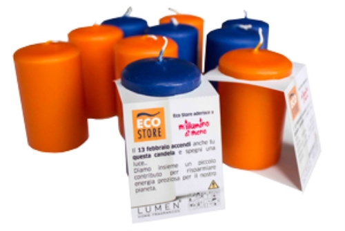 Durante la settimana di 'M’illumino di meno', i 330 store regaleranno, infatti, una candela ai clienti che acquisteranno prodotti Eco Store. Le candele, caratterizzate dai colori del brand arancio e blu, sono completamente Made in Italy e sono state realizzate dall’azienda Lumen di Seregno (MB), che utilizza per le proprie lavorazioni energia pulita, derivante da impianti fotovoltaici.