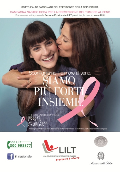 Nel mese di ottobre, la Lega Italiana per la Lotta contro i Tumori (LILT) ed Estée Lauder Companies, società specializzata nella profumeria di prestigio, tornano in prima linea nella lotta a questa grave patologia neoplastica, che registra un'incidenza sempre maggiore. Da segnalare, in particolare, l'illuminazione in rosa dei principali monumenti di molte città italiane e straniere, al fine di dare maggiore visibilità alla campagna. La testimonial di quest’anno è Margherita Buy.