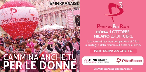 Forte dello straordinario successo dello scorso anno a Milano, questa volta l’impegno è raddoppiato e un secondo evento è previsto a Roma. Il mese di ottobre si aprirà quindi il 4 ottobre con PittaRosso Pink Parade Roma e si chiuderà il 25 ottobre con PittaRosso Pink Parade Milano, unendo idealmente l’Italia da nord a sud in una marcia tutta rosa.