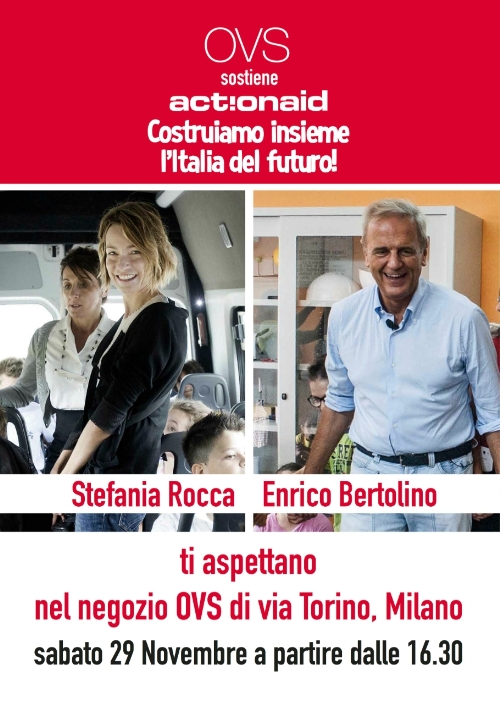 Stefania Rocca ed Enrico Bertolino da OVS a Milano per la campagna di ActionAid