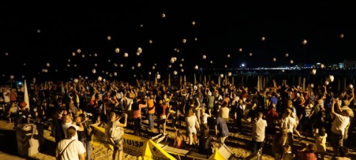 Alle 23, al culmine della serata, si è tenuta una grande kermesse in spiaggia con ' Sfida di palleggio collettivo' e lancio in aria di 500 palloni in contemporanea.