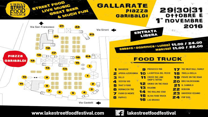 Il 29, 30, 31 ottobre e il 1° novembre approda a Gallarate in Piazza Garibaldi, la moda del momento, lo Street Food. Quattro giorni dedicati al cibo di strada con oltre 20 food truck di ultimissima generazione, veri e propri ristoranti su ruote che offrono cucina gourmet alla portata di tutti. Un evento a cura di Chocolat Pubblicità con ingresso libero e gratuito e orario continuato dalle 11.00 alle 24.00.