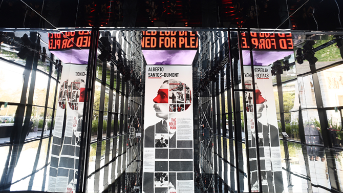 La struttura, con un corridoio ed un soffitto di specchi, ha trasmesso ai visitatori una senso di tridimensionalità. L’istallazione in vetro collegava i due Caselli Daziari, proponendo al pubblico un’esposizione sulla storia dell’orologio che nel 1904 Cartier ha dedicato a Santos Dumont e talk sul tema del pionierismo ai giorni nostri.