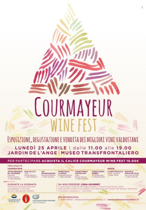 Acquistando lo speciale calice Courmayeur Wine Fest, al costo di 10 euro, anche in prevendita dal 25 marzo sarà possibile scoprire e degustare i vini esposizione e i prodotti gastronomici abbinati.