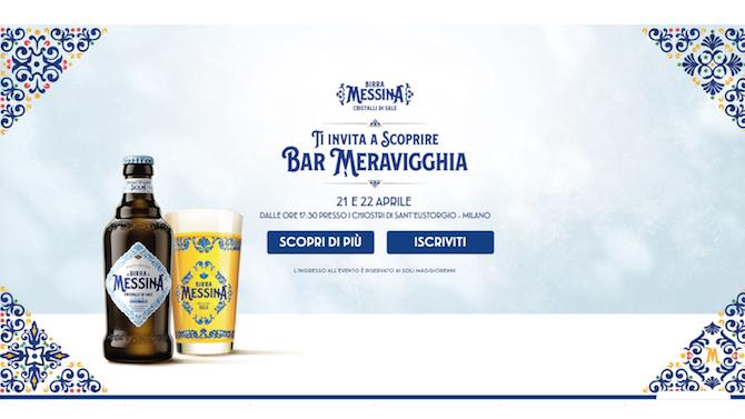 Il Bar Meravigghia nasce con l’obiettivo di omaggiare l’isola che ha dato i natali a Birra Messina e ha l’ambizioso obiettivo di far riscoprire il significato della “meraviglia”, intesa come viaggio esperienziale tra arte, cultura, gusto e tradizione, ai suoi visitatori. I chiostri che ospitano il bar sono impreziositi da installazioni iconiche tra le quali è possibile poter gustare il tradizionale cibo siciliano sorseggiando Birra Messina Cristalli di Sale.