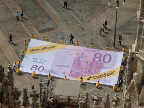 Betfair.it porta in Piazza Duomo un'enorme banconota da 80 euro