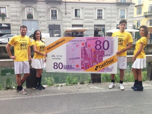 Non è ancora il 27 del mese, ma Betfair.it è già pronta a dare 80 euro a tutti. Il bookmaker inglese che ha rivoluzionato il mondo delle scommesse online è sceso in campo con un’enorme banconota da 80 euro in Piazza Duomo a Milano, per lanciare una promozione unica nel suo genere. Si tratta di un bonus di benvenuto di 80 euro che Betfair.it offre a tutti i nuovi clienti.