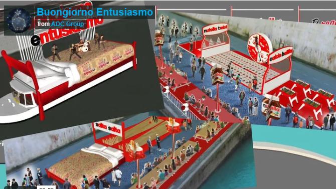 Proponiamo il video dell'evento realizzato per il cliente Ferrero (brand Nutella e Nutella B-Ready) e svoltosi il 26 agosto 2015 in due località contemporaneamente: a Roma Lungotevere e a Milano, all'interno di Expo 2015. L'iniziativa, di grande richiamo pubblico, era rivolta a un pubblico ampio e trasversale, bambini e adulti di ogni età.