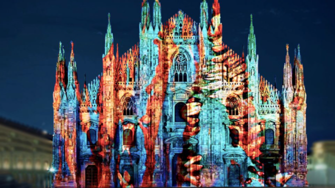 Lo spettacolo ha coinvolto i tre luoghi simbolo di piazza Duomo: il Duomo, Palazzo Reale e il Museo del Novecento.