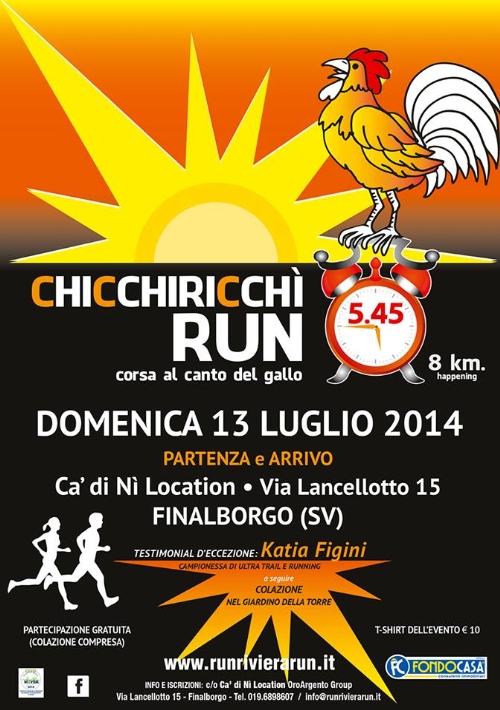 Non è ancora partita, ma già impazza la moda della Chicchiricchì Run, la corsa al canto del gallo aperta a tutti i runner e agli appassionati del running che si terrà una volta al mese in una cittadina della Regione Liguria.