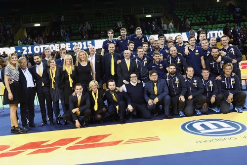Il PalaPanini è stato letteralmente preso d'assalto, e il main sponsor DHL ha fatto trovare su ogni poltroncina una maglia gialla con la scritta 'Noi siamo la squadra'.