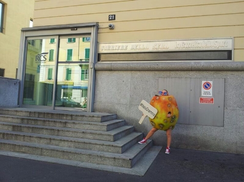 Nei giorni scorsi tra le vie del centro di Milano è stata avvistata una strana Mela in 'carne e ossa', il cui aspetto sofferente e malato non ha mancato di destare l’attenzione dei passanti.