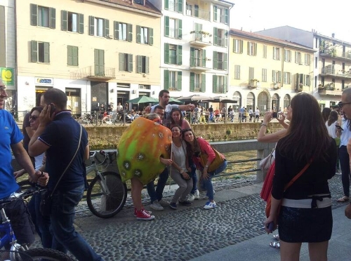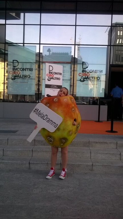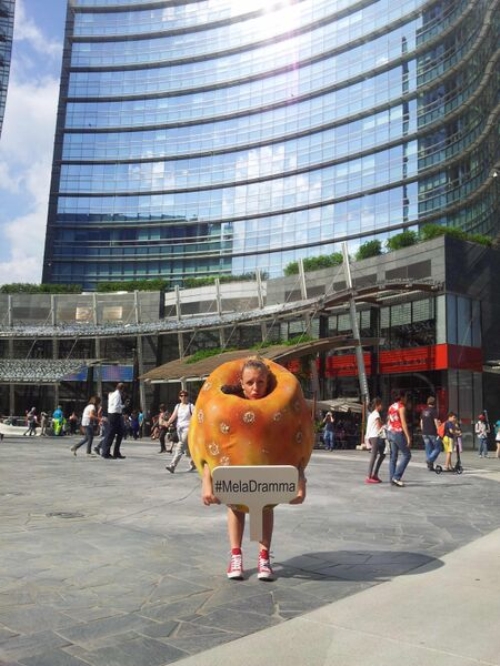 Da Piazza Gae Aulenti alla nuova Darsena, dal Quadrilatero della Moda all’Expo Gate di Piazza Castello, l’inconsolabile mela ha attraversato la città senza mai smettere di piangere, accompagnata soltanto da un cartello su cui era riportato l’hashtag #MelaDramma.