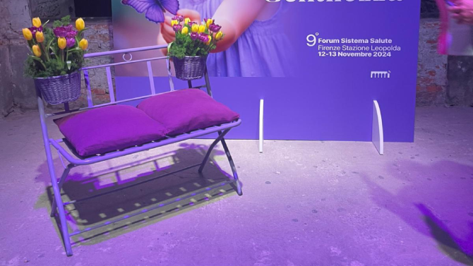 Una panchina viola, contornata da fiori, su cui sedersi per pensare alla gentilezza: i gesti che si possono fare e, perché no, quelli che si possono ricevere. E’ l’iniziativa lanciata da Koncept durante la nona edizione del Forum Sistema Salute, la rassegna sulla sanità in corso alla Stazione Leopolda di Firenze.
