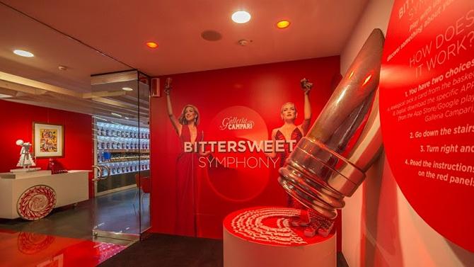 'BitterSweet Symphony' è un percorso espositivo non convenzionale, un’avventura sensoriale interattiva che coniuga le arti figurative con altre discipline, dalla musica al cinema, passando per la moda e l’alta profumeria, in un percorso che coinvolge i cinque sensi, alla scoperta delle due anime che convivono armoniosamente nel Campari: la Dolcezza e l’Amarezza.