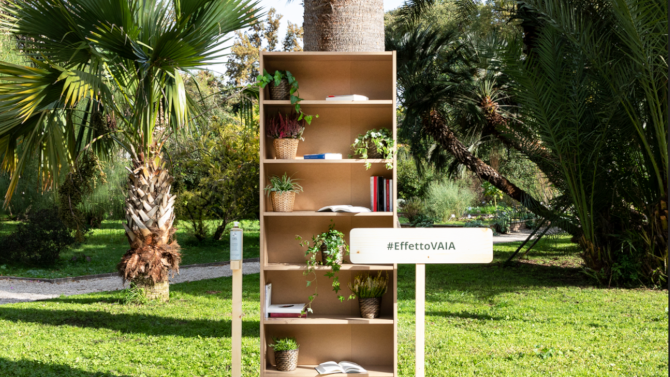 “Effetto VAIA” è la storia di qualcosa considerato perduto che ha trovato una nuova vita: il legno delle foreste devastate dalla tempesta Vaia, che nell’ottobre 2018 distrusse i boschi del Triveneto, torna a vivere all’Orto Botanico di Roma, alle pendici del Gianicolo, e al Parco Biblioteca di Villesse (GO) per ispirare nuove storie con un finale positivo.