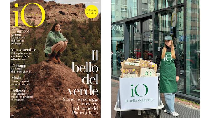 Con un’attività di guerrilla marketing, nei giorni precedenti l’uscita in edicola, le esclusive eco bag di iO Donna, contenenti una copia del giornale e dei semi di cui prendersi cura e far crescere, saranno distribuite da hostess con cargo bike elettriche brandizzate iO Donna in centri selezionati.