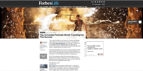 La rivista statunitense Forbes Magazine e il website Forbes.com pubblicano i 12 festival più cool del mondo, quelli per cui vale la pena fare un viaggio.