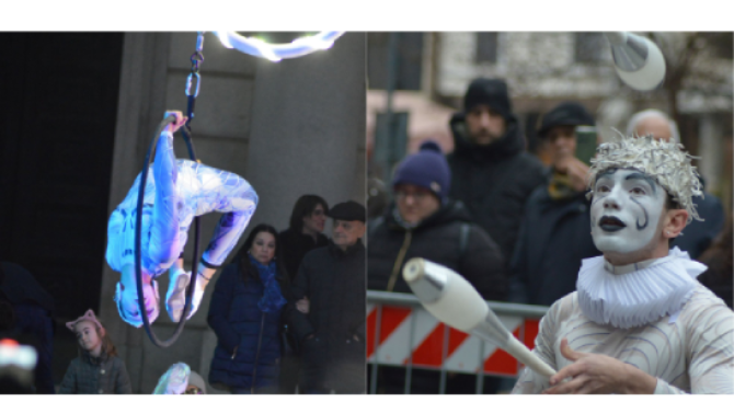 In Piazza Garibaldi tra la mattina e il pomeriggio spazio alla comicità e alla meraviglia con le performances de Il Circo di Pongo, Sasky il Clown, Clown Fantastik e il Duo Flic Flac, tra mimica, equilibrismo e giocoleria, in un susseguirsi di numeri brillanti e grande energia. Nel pomeriggio la parata tornerà ad animare le vie cittadine: alle 15:30 partenza da Palazzo Verbania e passaggio in via Vittorio Veneto, preparando il pubblico al gran finale delle 18.00 al Parco Ferrini con “Il Sogno di un Clown”: spettacolo poetico e visionario che, sotto una gigantesca luna luminosa, condurrà grandi e piccoli in un racconto sospeso tra fantasia e stupore.