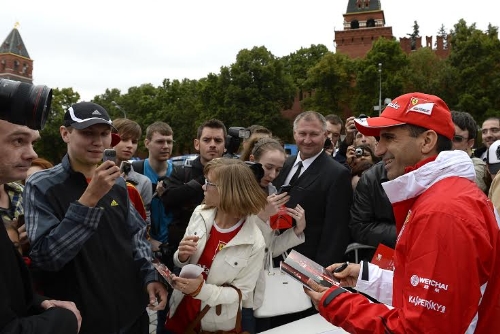 Oltre 100.000 appassionati tra tifosi e amanti del motorsport si sono dati appuntamento intorno al Cremlino. Il collaudatore della Scuderia Ferrari, Marc Gené, è stato il protagonista assoluto della giornata, che ha visto anche lo svolgersi di una parata per celebrare i dieci anni di presenza Ferrari in Russia.