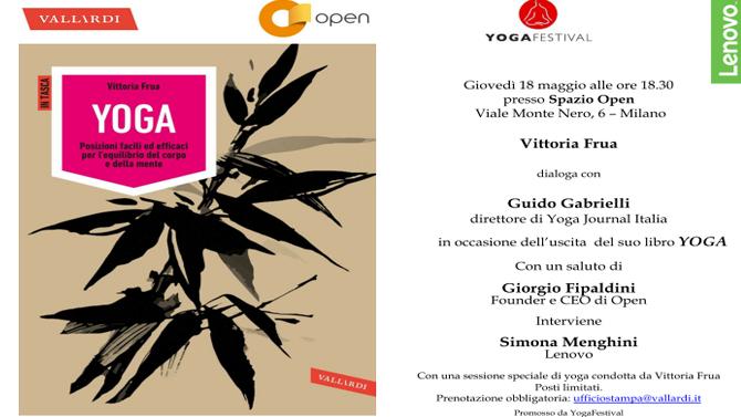L’appuntamento è per giovedì 18 maggio a partire dalle 18.30 presso lo spazio polifunzionale Open Milano di viale Montenero, 6 (MM Porta Romana) dove verrà presentato in anteprima il libro 'Yoga' dell’autrice americana naturalizzata in Italia Vittoria Frua.