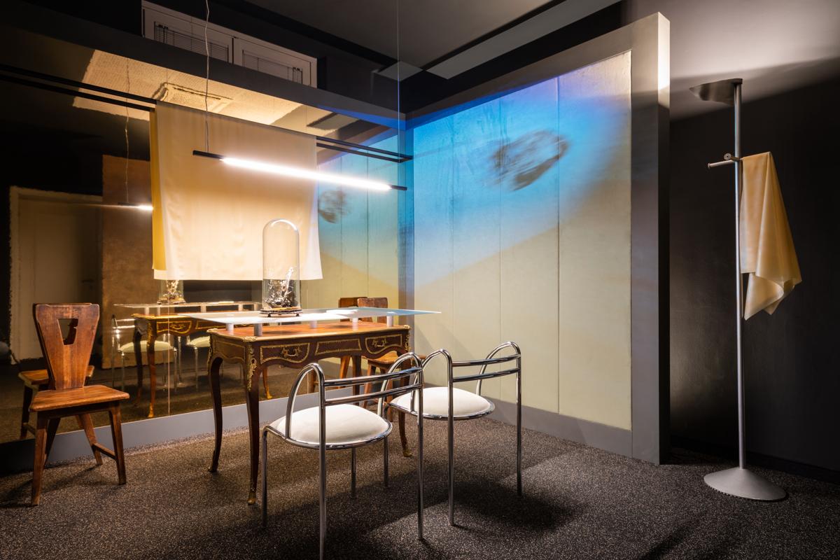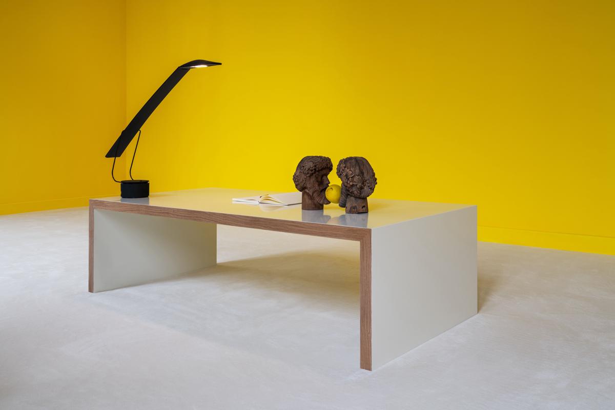 I pezzi selezionati sono stati scelti e progettati nell’ottica di valorizzare l’esperienza lavorativa dell’individuo che li utilizza. La scrivania è composta da elementi monolitici per soddisfare la necessità di riporre oggetti, ma allo stesso tempo conserva una certa trasparenza in modo da non distaccarli troppo dal resto dell’ambiente.”