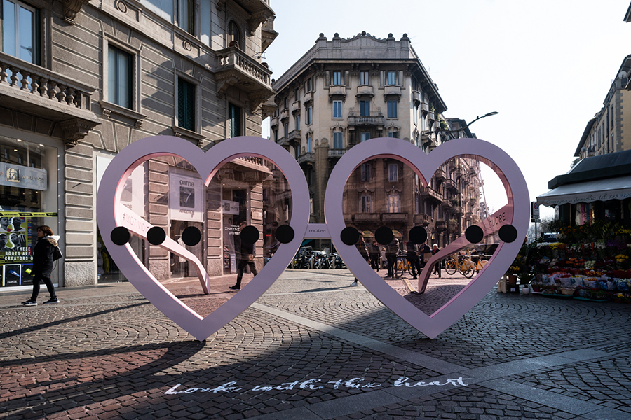 ‘Look with the heart’, Motivi e Piano B lanciano una sfida: una serie di installazioni invitano il pubblico a cambiare punto di vista, guardando la Fashion Week milanese con il cuore