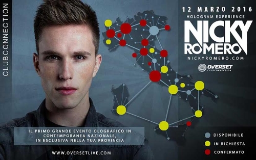Nicky Romero si esibirà in contemporanea in più club, connessi tra loro grazie alla tecnica dell’ologramma realizzata da Overset ClubConnection, che consente così di creare un vero e proprio network di locali.