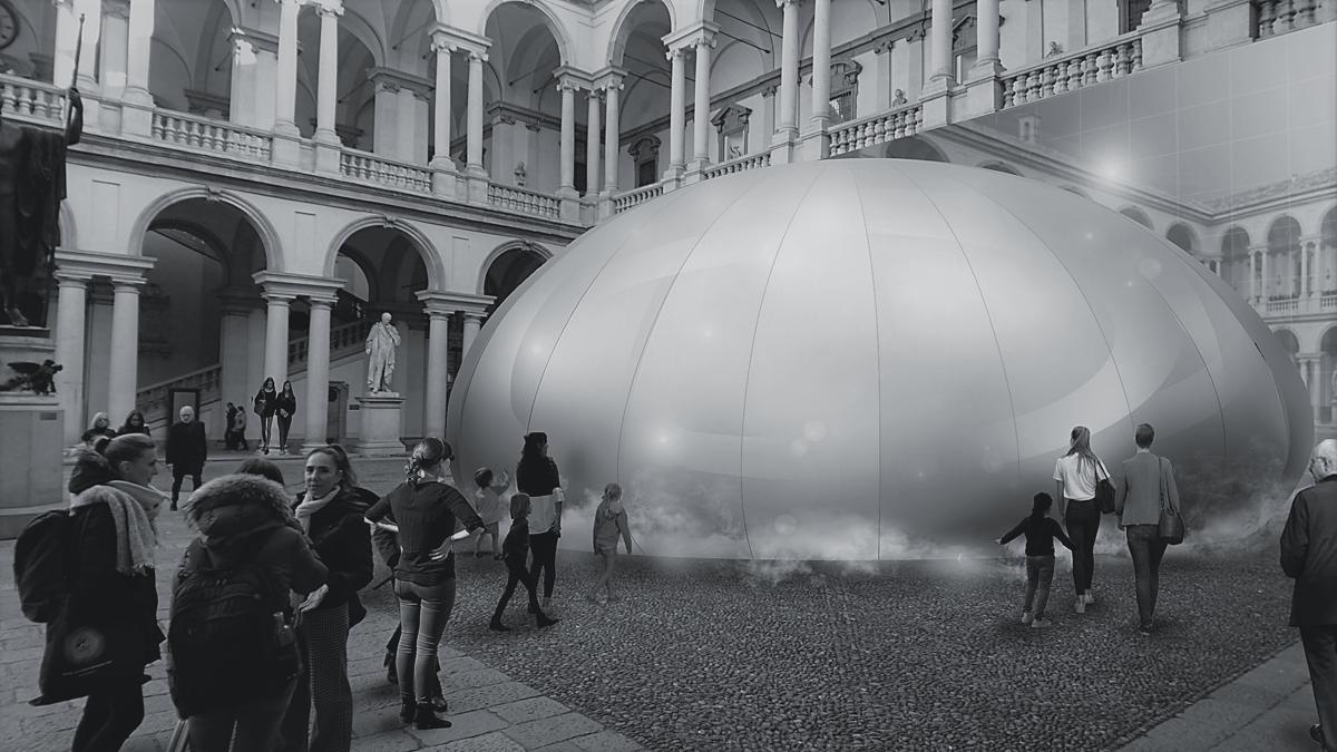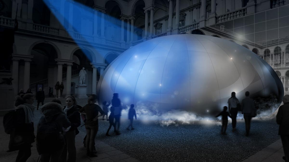 All'interno del cortile d’onore del Palazzo di Brera si potrà ammirare l'installazione di un imponente padiglione dal diametro di 20 metri, la cui forma ricorda la fonte dell'aria: la goccia d'acqua. Grazie alle tecnologie Panasonic di elaborazione dell’aria, quali Silky Fine Mist - diffusore di microparticelle acquose atomizzate - e Nanoe X - purificatore d'aria - verrà creato un ambiente confortevole proprio nel cuore di Milano.