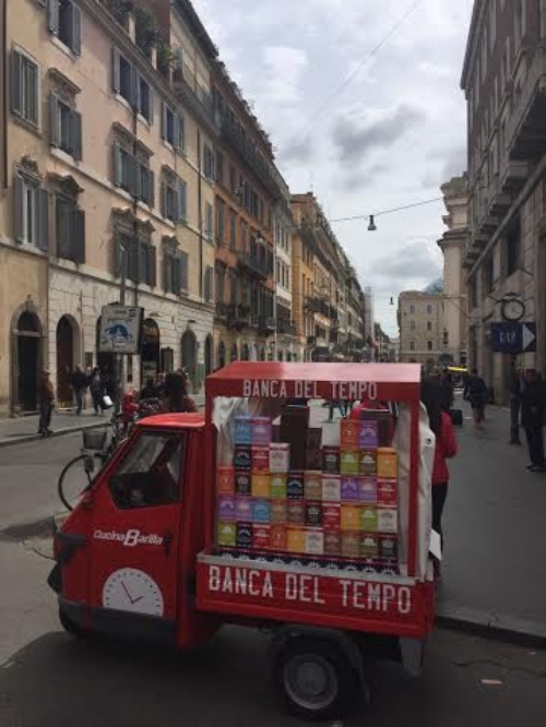I ragazzi del team CucinaBarilla hanno distribuito a tutti i passanti dei flyer colorati a forma di orologio, con cui potevano ritirare i loro 'minuti liberati' alla Banca del Tempo. Un’Apecar si è trasformata nella magica Banca del Tempo, dove le persone presentando il flyer hanno ricevuto una misteriosa confezione che ha consentito loro di guadagnare del tempo e che racchiudeva tutti gli ingredienti necessari per preparare delle gustose Mezze Penne al Pomodoro.