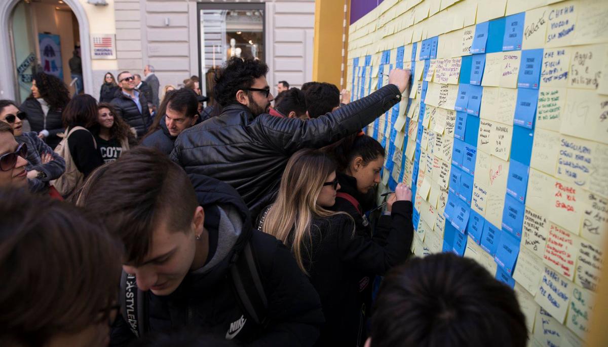 In via Scarlatti (nei pressi della fontana Itaca) è stato installato un wall gigante ricoperto da foglietti memo che hanno composto la scritta “Da qui a un anno”. Alcuni memo hanno riportato dei propositi mentre altri, oltre 3.500, sono stati riempiti dai passanti invitati a prendere o lasciare il proprio impegno da qui a un anno, avendo l’opportunità di entrare direttamente nell’atmosfera del programma.