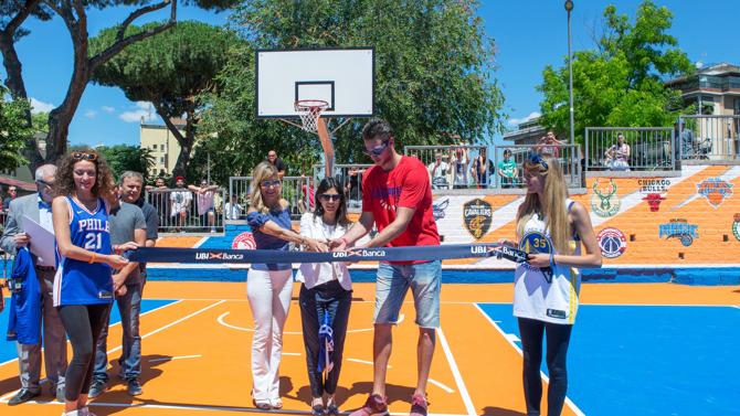 Uno spazio completamente rinnovato e restituito alla cittadinanza, dedicato agli appassionati di basket: UBI Banca e NBA, con il patrocinio del Comune di Roma, inaugurano oggi, 29 giugno, il nuovo campo da pallacanestro all’interno del Parco della Cecchina, a Roma, ristrutturato interamente grazie al contributo della Banca. A rendere ancora più suggestivo l’intervento, un murales di “20 + 30 metri” realizzato dal collettivo “Arte e città a colori” raffigurante i loghi delle 30 franchigie dell’NBA.