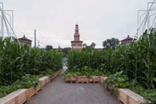 Oltre 1.500 piante ad altezza d’uomo formano il rigoglioso campo di mais che un mattino di fine luglio spunta tra i due padiglioni di Expo Gate, davanti al Castello Sforzesco.
