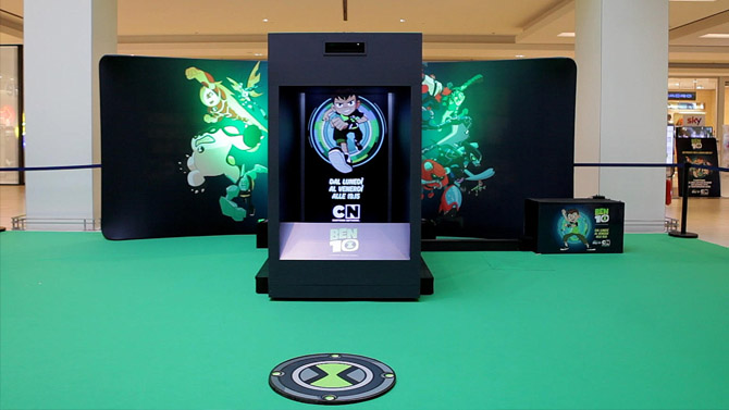 Ben 10 è un normale ragazzino di 10 anni che, grazie a uno speciale bracciale ricevuto dagli alieni riesce a trasformarsi in diversi mostri che con i loro super poteri salvano il mondo. I fan del piccolo eroe, che dopo anni di assenza torna su Cartoon Network con una serie tutta nuova, hanno potuto vivere in prima persona uno dei momenti più emozionanti di ogni puntata: grazie a una replica dell’Omnitrix, lo speciale device che permette a Ben 10 di trasformarsi, hanno visto il loro avatar alieno materializzarsi in una teca olografica alta più di due metri realizzata in collaborazione con Forge Reply, azienda italiana specializzata nello sviluppo di videogame.