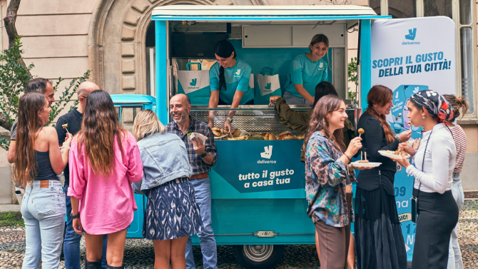 Per celebrare l’avvio della campagna Deliveroo, in collaborazione con l’agenzia creativa Ribelli, ha avviato un tour tra le principali città italiane - Milano, Roma, Napoli - a bordo di una speciale ApeCar dall’inconfondibile color teal. Il food truck porterà nelle piazze di queste città il cibo da una selezione di ristoranti partner della piattaforma dando la possibilità a clienti e curiosi di poter scoprire lo scenario gastronomico della propria città o del proprio quartiere. Del resto, secondo una ricerca SWG solo 1 italiano su 5 dichiara di essere esperto dell’offerta food della propria città o quartiere. Ma per quasi il 40% è forte la voglia di esplorare.