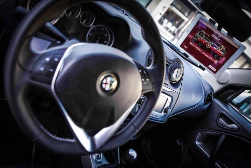 Chiunque salirà a bordo di MiTo o Giulietta, troverà sul parabrezza un iPad su cui è installata un’applicazione che permette di effettuare alcune interessanti operazioni tra cui la visualizzazione della scheda tecnica della vettura selezionata, l’avvio del test drive e la ripresa video della prova su strada, come se si fosse su un vero un circuito di Formula 1.