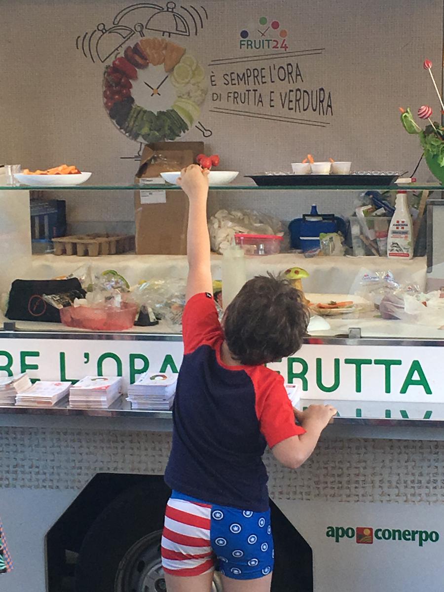 Ad ogni sosta il coloratissimo motor home di Fruit24 ha anche catalizzato l’attenzione dei più piccoli, facendoli divertire con assaggi spiritosi di frutta e verdura, forgiata abilmente da visual foodist e quindi resa quasi un gioco da assaporare con grande allegria.