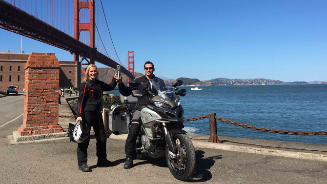 Globetrotter 90° segna un nuovo traguardo: la belga Jessica Leyne, unica donna ad affrontare il viaggio intorno al mondo in sella alla Ducati Multistrada 1200 Enduro, ha concluso la terza tappa. Arrivata a San Francisco ha consegnato la fiaccola al prossimo Globetrotter Eduardo Generali.Mancano ancora quattro tappe per raggiungere la meta dei 30.000 km dell’avventura Globetrotter 90°.