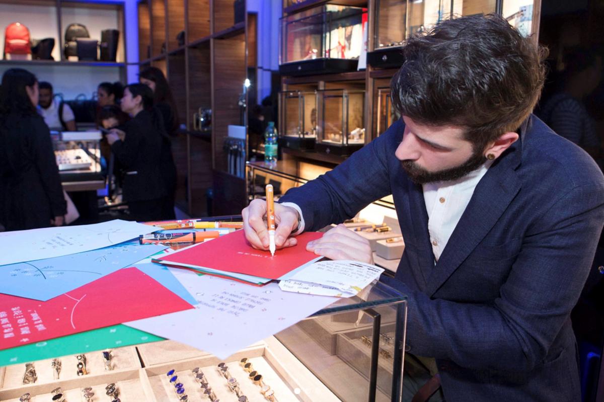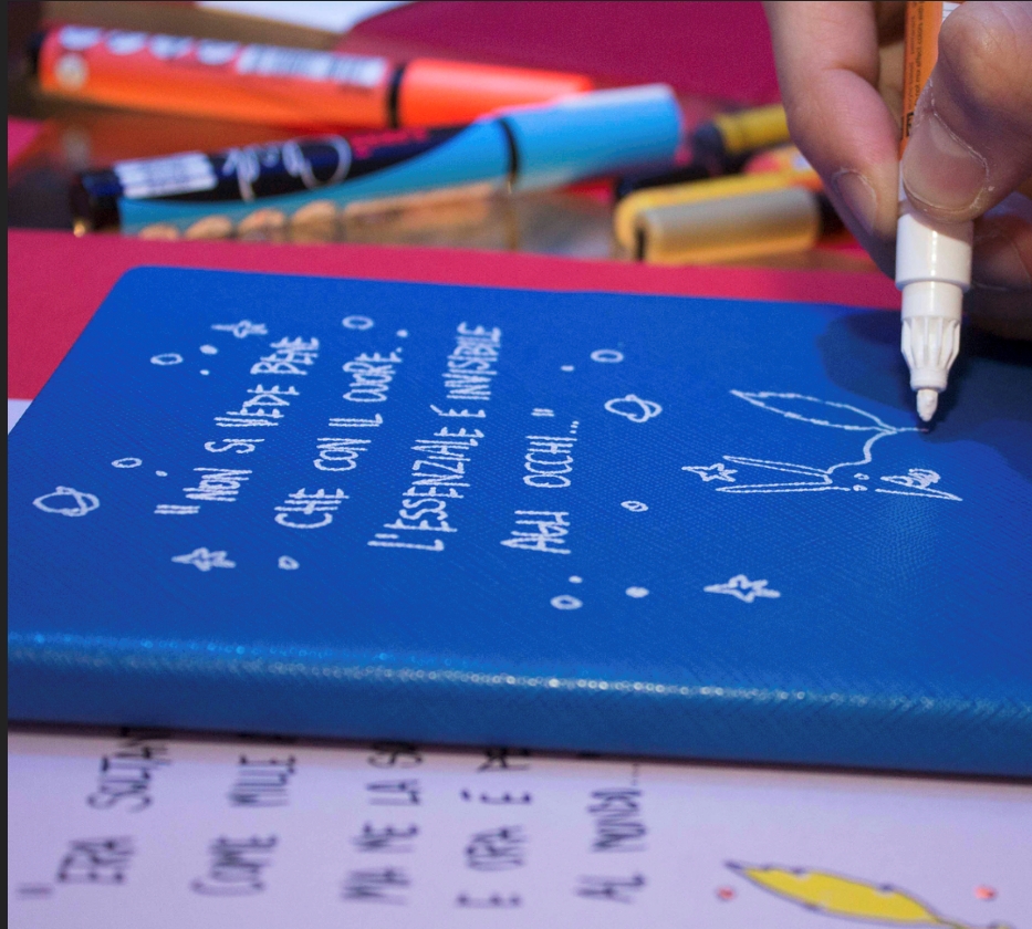 A ricordo della speciale occasione, un disegnatore personalizza con le frasi e i disegni del racconto di De Saint-Exupery le copertine della Fine Stationary Montblanc.