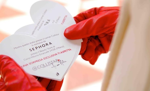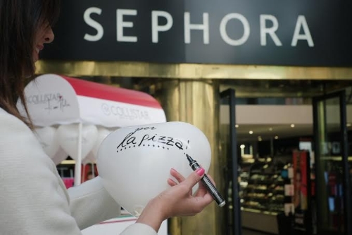 Antonio Marras ha firmato con il suo tratto inconfondibile anche una capsule collection all’interno della collezione primavera estate. Oltre alla consegna del palloncino le promoter hanno coinvolto il pubblico consegnando un flyer cartaceo che dava diritto a un omaggio Collistar all’interno del punto vendita Sephora.