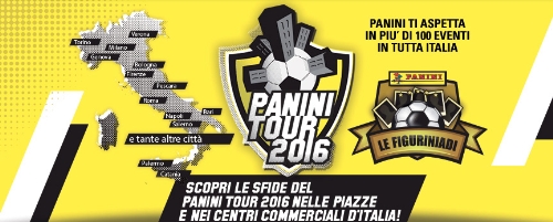 Gli eventi maggiori del Panini Tour 2016 saranno ospitati nelle piazze di cinque città (Napoli, Roma, Firenze, Torino e Genova): nel grande 'villaggio' Panini – articolato su accoglienti tensostrutture e ampie aree esterne attrezzate – saranno organizzate diverse gare a premi, tra cui Figu Record a chi lancia le figurine più lontano, 'Figu Quizzone' a chi risponde al maggior numero di domande sul calcio e sulla collezione 'Calciatori', e 'Speedy Attack' a chi attacca più rapidamente le figurine sull’album.