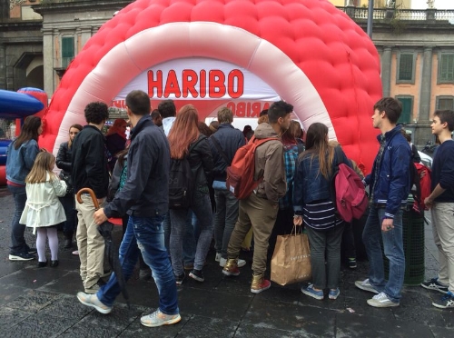 deliziose caramelle Haribo nelle vie della città.