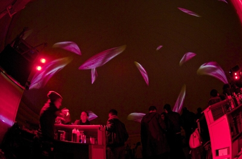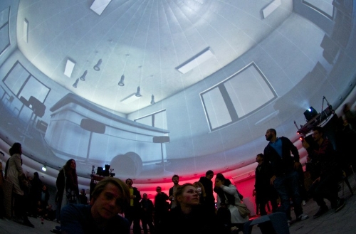 La cupola geodetica per proiezioni multimediali a 360° ha un diametro di 22 metri e un’altezza di 20 metri e può contenere 500 persone. La copertura semitrasparente della cupola gonfiabile permette di proiettare immagini sia all’interno che all’esterno.