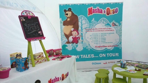 Il primo evento itinerante dedicato ai famosi personaggi della saga russa amatissimi dai bambini italiani è partito lo scorso 30 gennaio da Madesimo, ha toccato Zoldo in provincia di Bergamo e farà tappa, fino ad aprile, in altre quattro località. L'agenzia detiene per l’Italia i diritti delle live apperance dei live character di Masha e Orso e dei 'non ticket events' dei due personaggi.